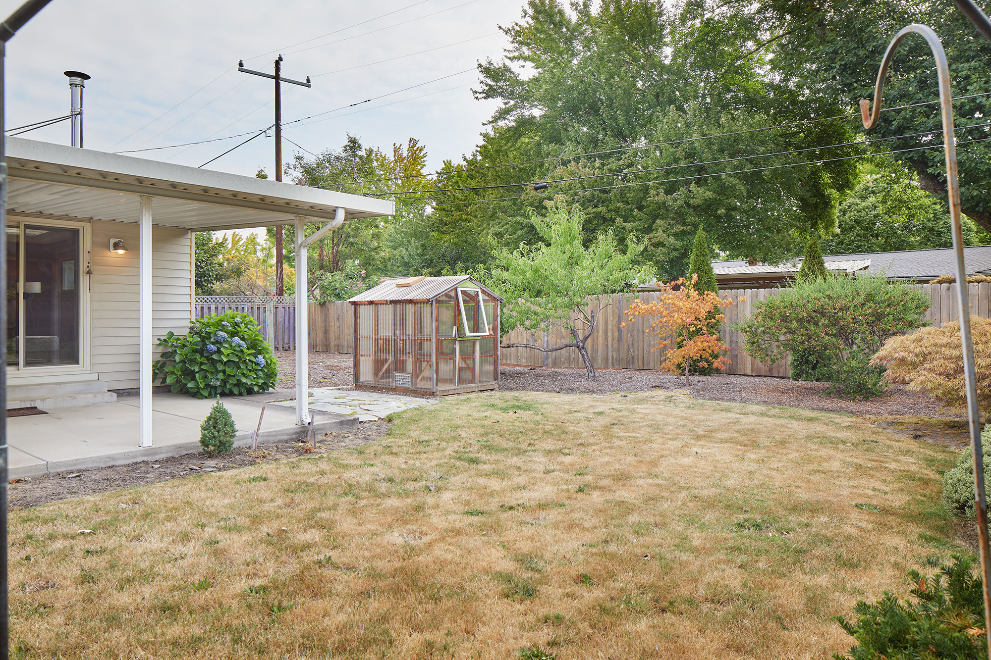 Welcome to this classic mid-50’s home in a classic, close-in neighborhood. You'll love the original hardwood floors in living room and entry plus also original, period correct, cork floors in the bedrooms. The generously sized living room and family room make entertaining a breeze. There is a brick wood burning fireplace in the living room along with a certified wood burning stove in the family room. You will find updated vinyl windows throughout home. The flat yard has had prolific vegetable gardens in the past and has lots of mature plantings. The green house is included as is the modern/Asian motif chime bell permanently installed. There is a storage/work room off garage and efficient storage building on cement pad for even more convenience and projects.