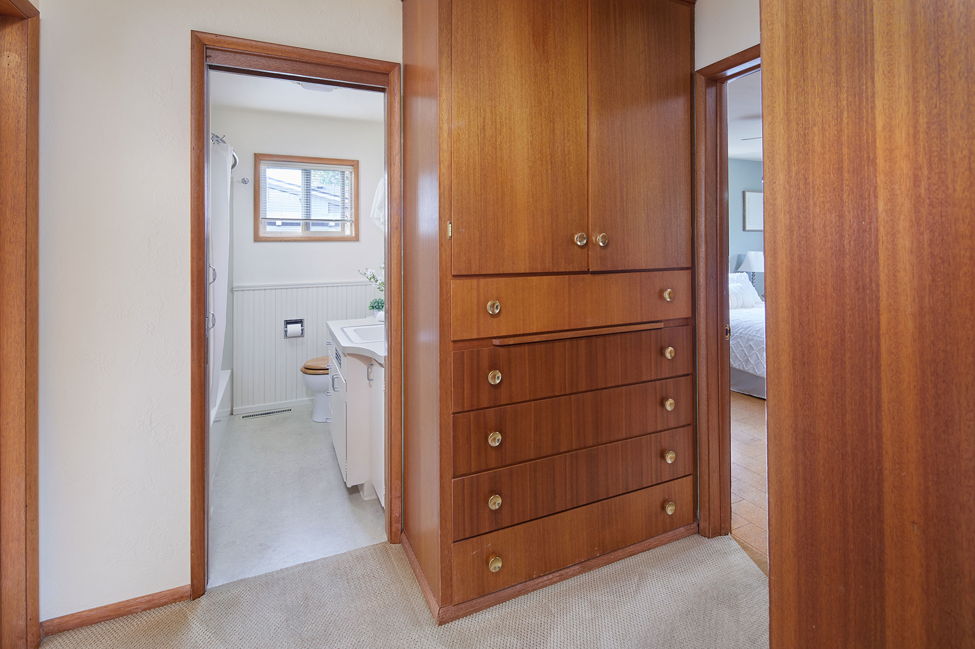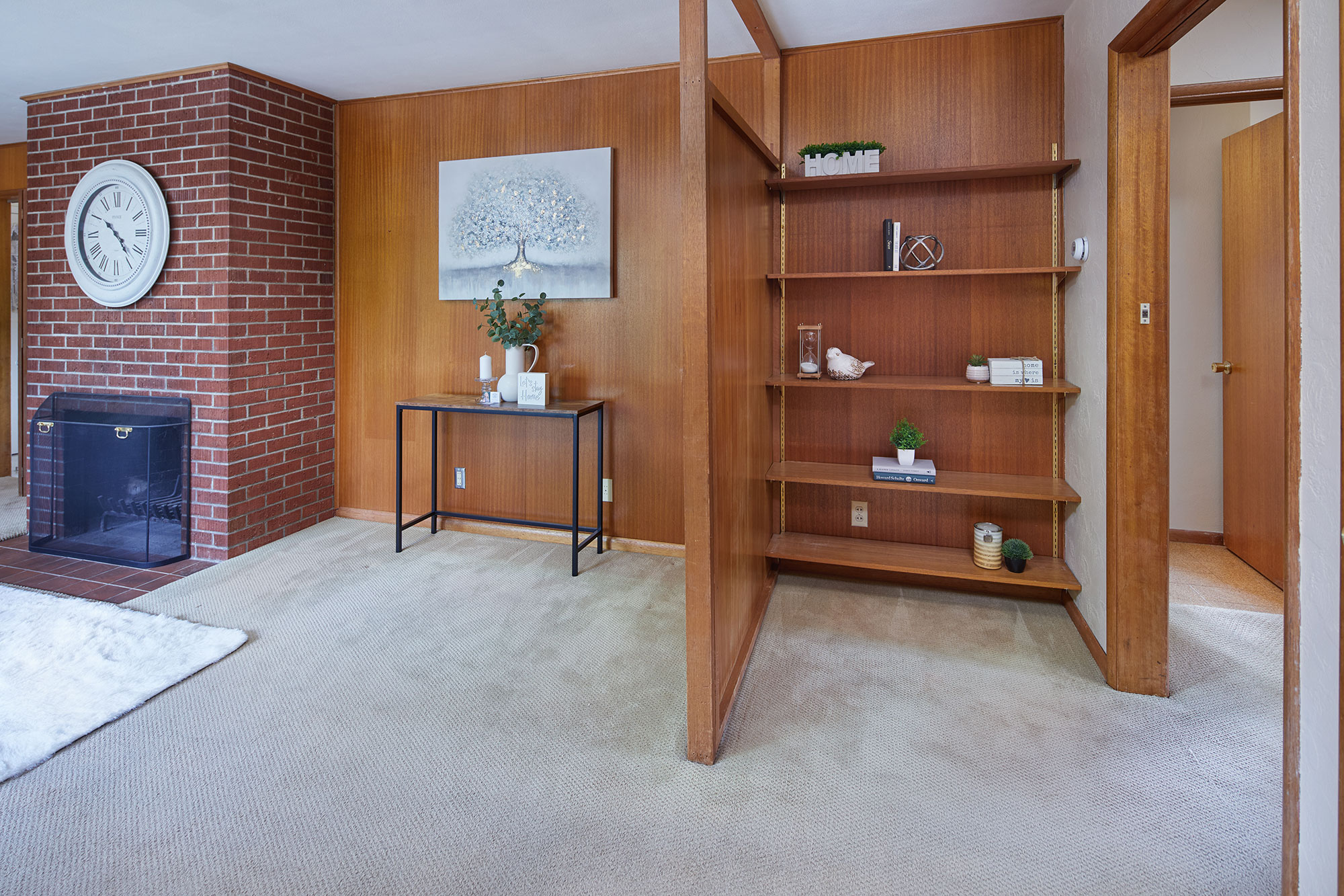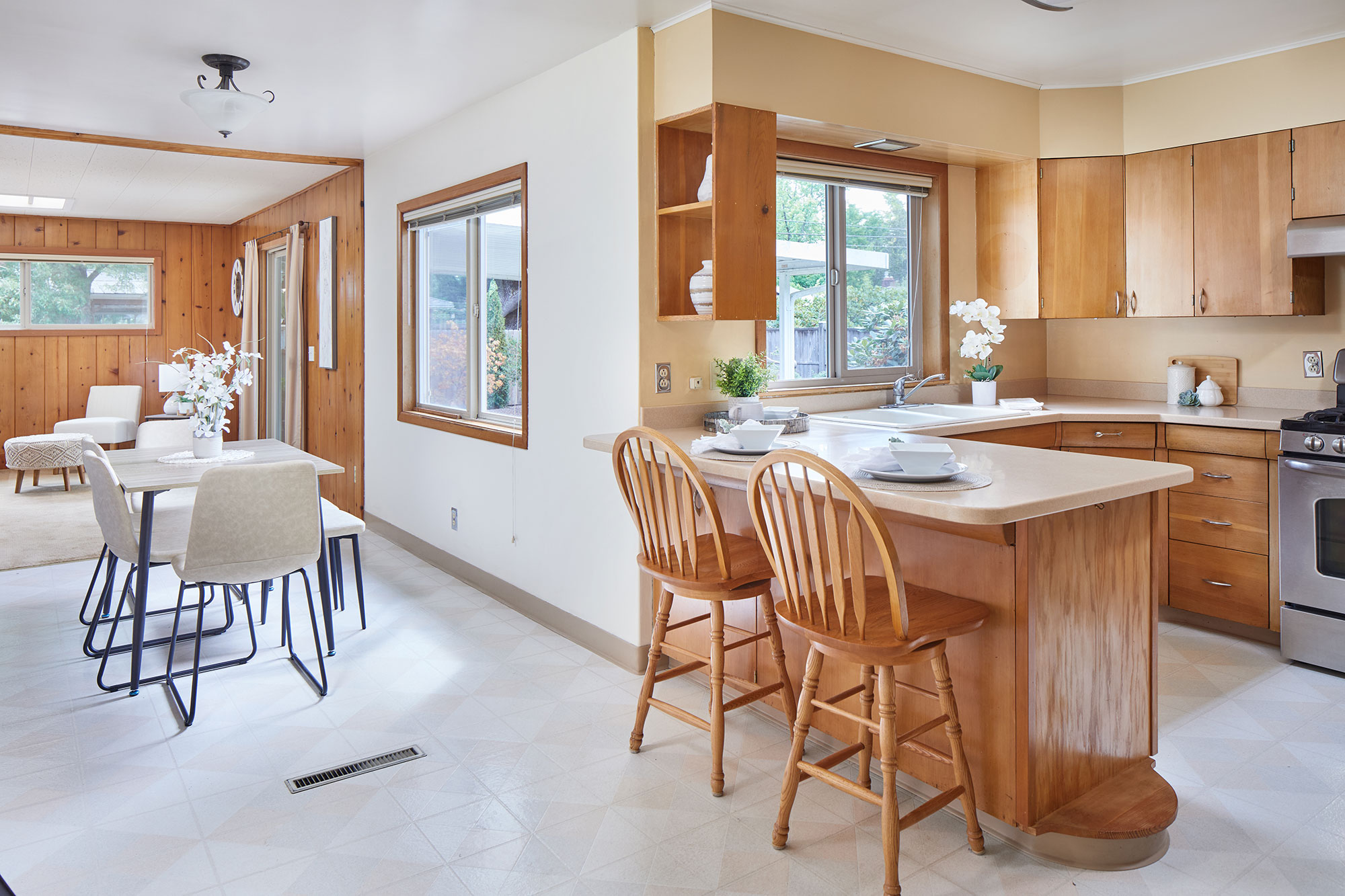 Welcome to this classic mid-50’s home in a classic, close-in neighborhood. You'll love the original hardwood floors in living room and entry plus also original, period correct, cork floors in the bedrooms. The generously sized living room and family room make entertaining a breeze. There is a brick wood burning fireplace in the living room along with a certified wood burning stove in the family room. You will find updated vinyl windows throughout home. The flat yard has had prolific vegetable gardens in the past and has lots of mature plantings. The green house is included as is the modern/Asian motif chime bell permanently installed. There is a storage/work room off garage and efficient storage building on cement pad for even more convenience and projects.